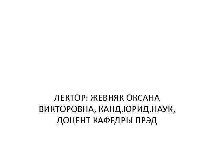 ЛЕКТОР: ЖЕВНЯК ОКСАНА ВИКТОРОВНА, КАНД. ЮРИД. НАУК, ДОЦЕНТ КАФЕДРЫ ПРЭД