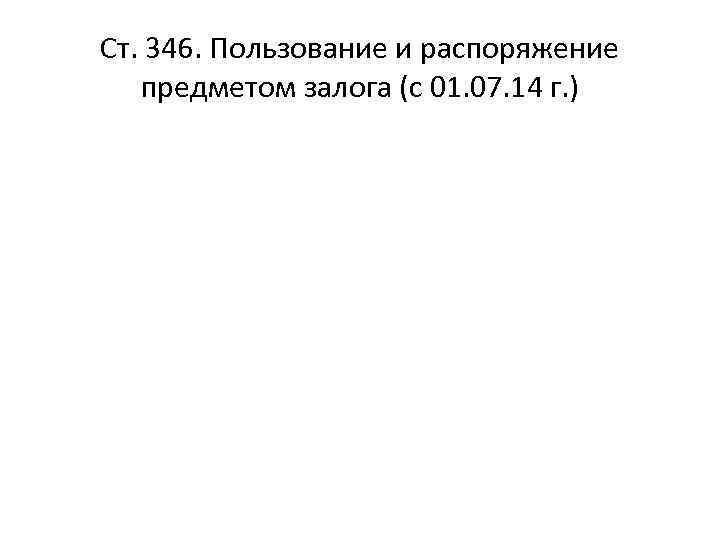Ст. 346. Пользование и распоряжение предметом залога (с 01. 07. 14 г. )