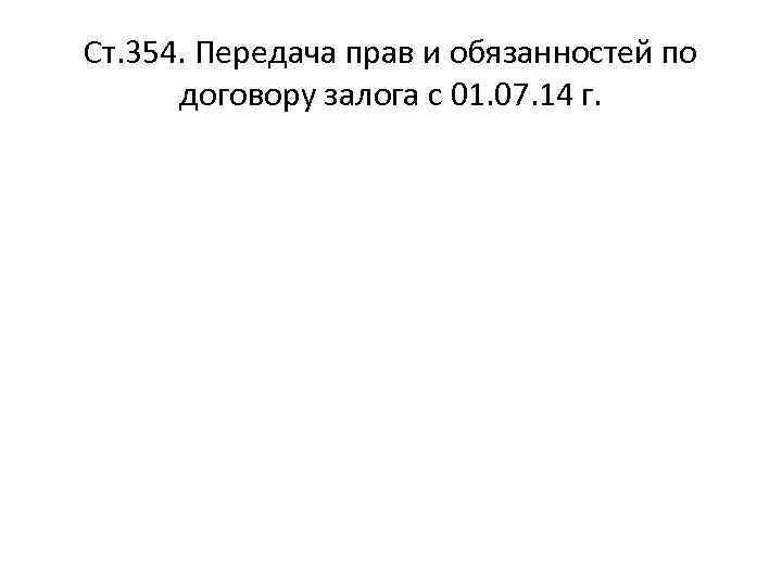 Ст. 354. Передача прав и обязанностей по договору залога с 01. 07. 14 г.