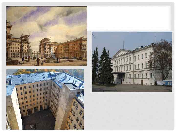 АРХИТЕКТУРА • Ведущим направлением в архитектуре 20 -30 -х годов стал конструктивизм, который стремился использовать новую технику для создания простых, логичных, функционально оправданных форм, целесообразных конструкций. Конструктивизм широко использовался в строительстве общественных и жилых зданий, прежде всего Домов и Дворцов культуры, рабочих клубов. Одним из лучших произведений советского конструктивизма 30 -х годов стал дворец культуры имени Лихачева, созданный по проекту крупнейших советских мастеров братьев Л. А. , В. А. , А. А. Весниных в 1931 -1937 годах. При строительстве зданий в этом стиле использовались бетон, стекло, металлические конструкции.