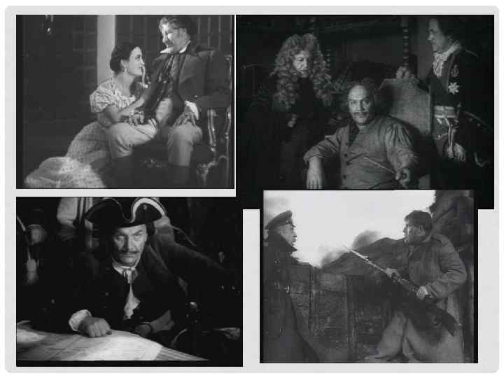 КИНОИСКУССТВО • После революции в Петрограде работала фабрика Севзапкино, выпускавшая фильмы в духе времени. На этой фабрике появляются первые документальные и мультипликационные фильмы. • В 20 -х гг. появилось звуковое кино. Первый звуковой кинотеатр открылся в Ленинграде. На этой студии создавались фильмы, составившие золотой фонд отечественного кинематографа. • Созданы такие комедии как “Дубровский”, “Петр 1”, “Чапаев”, “Человек с ружьем”.