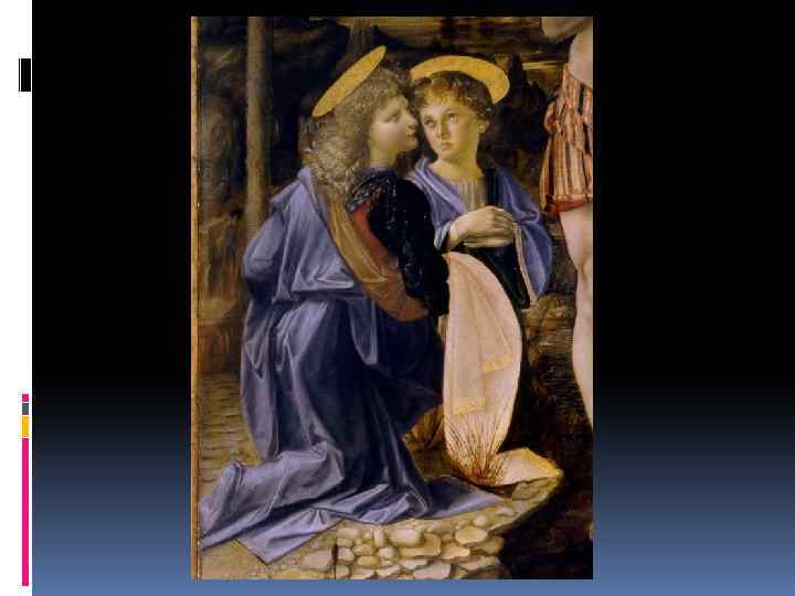 Картина Верроккьо «Крещение Христа» . Ангел слева (левый нижний угол) — творение кисти Леонардо.