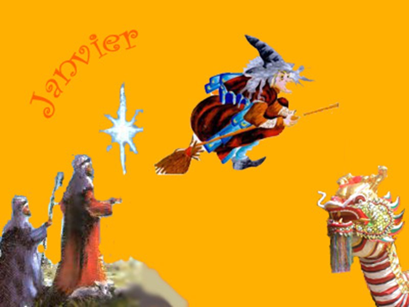 LE NOUVEL AN On décore la maison avec du gui, symbole du bonheur. On réveillonne toute la nuit. ÉPIPHANIE Le 6 janvier c’est le jour des Rois Mages. On partage en famille ou entre amis la Galette des Rois.