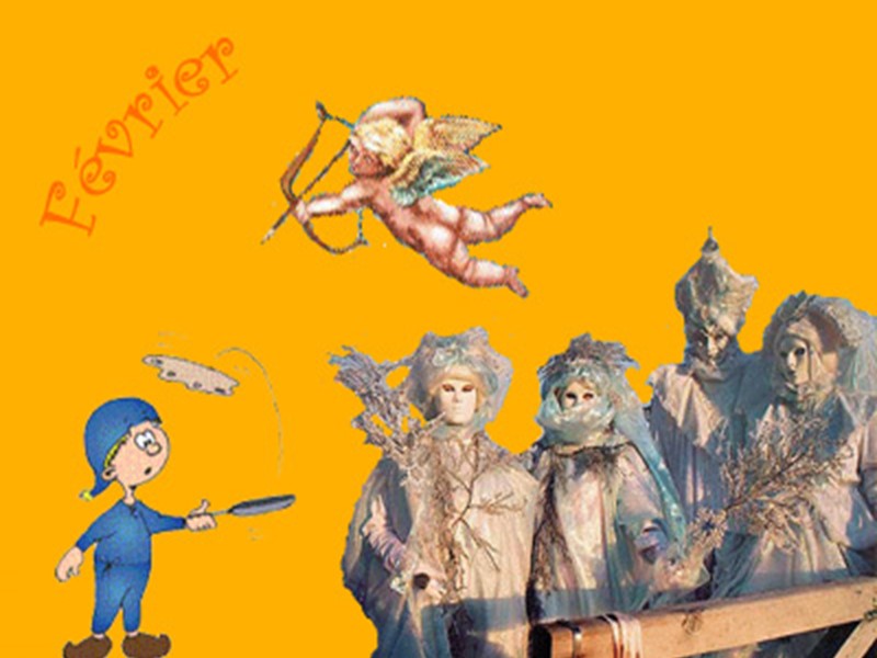 LA CHANDELEUR Le 2 février c’est la fête de la Vierge Marie. La tradition veut que nous fassions sauter des crêpes. SAINT VALENTIN Le 14 février c’est la fête des amoureux. On offre des fleurs ou des chocolats à celui ou celle qu’on aime.