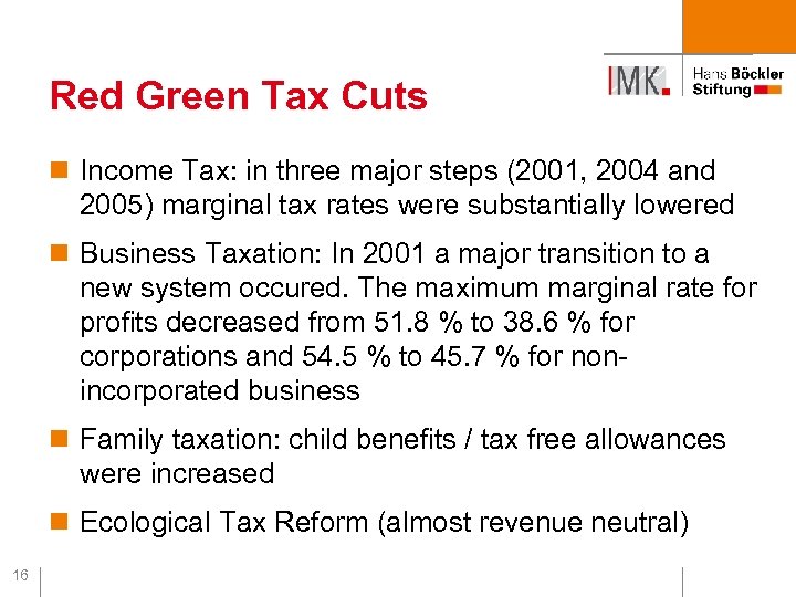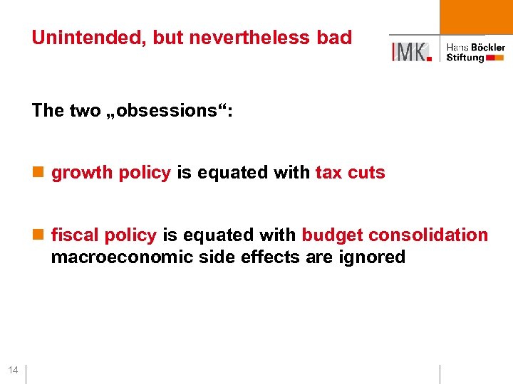 Tax cuts and budget consolidation The two fatal obsessions of German fiscal policy since 1998 Séminaire économie de la mondialisation, OFCE Paris, 7 December 2009 Achim Truger, IMK in der Hans-Böckler-Stiftung www. boeckler. de