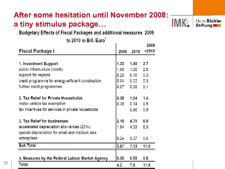 After some hesitation until November 2008: a tiny stimulus package… 30