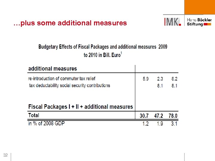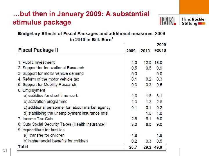 …but then in January 2009: A substantial stimulus package 31