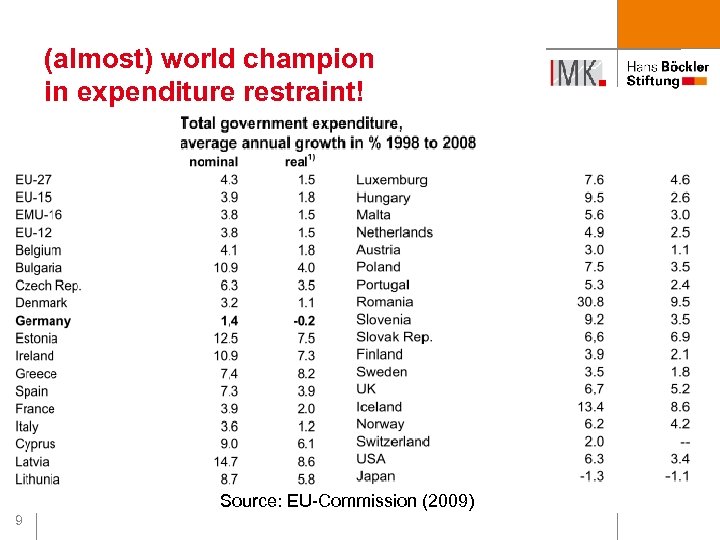 (almost) world champion in expenditure restraint! Source: EU-Commission (2009) 9