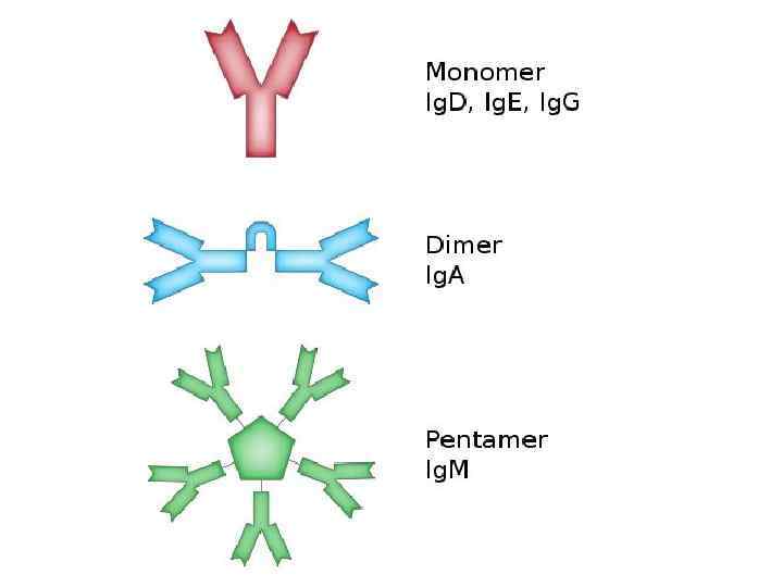 Ig. A Ø Ig. A is also transferred via the milk from a mother to a newborn, which provides passive immunity to many pathogens, especially those that enter by way of the GI tract Ø In humans there are two types of Ig. A, predominantly Ig. A 1, found in serum and derived in bone marrow, and Ig. A 2, a secretory form of Ig. A (small differences in chemical structure)