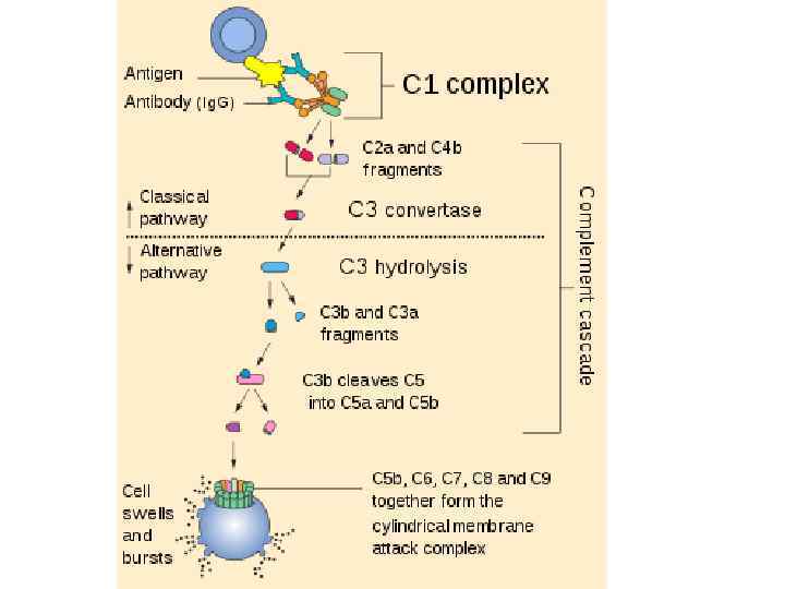 ACTIVATION OF COMPLEMENT Antibodies combined with the surface of microorganisms or surfaces of Ag activate the complement cascade which has four principal effects related to host defense: 1. Induction of the inflammatory responsechemotactic 2. Attraction of phagocytes to the site of immunological encounter 3. Opsonization of cells showing foreign Ag 4. Complement-mediated lysis of certain bacteria or viruses