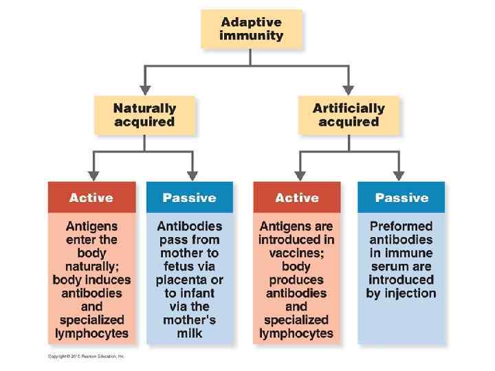 ARTIFICIALLY ACQUIRED IMMUNITY Artificially acquired immunity is the immunity obtained through the administration of a vaccine or immune serum. 1. Artificially acquired active immunity - the antigen is introduced into the vaccine (immunization), the body generates an immune response to the antigen. Immunity can be lifelong (oral polio vaccine) or temporary (tetanus). 2. Artificially acquired passive immunity: ready antibodies (antisera) are injected into the body. Immune serum of horses or rabbits with snake bites. Immunity is short-lived, determined by the half-life of Ig. G (three weeks). The human immune system does not respond to the antigen.