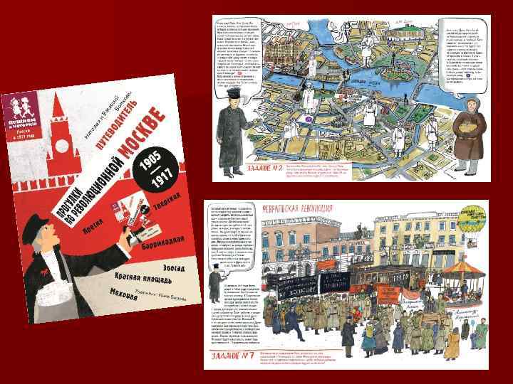 Триптих издательства «Пешком в историю» энциклопедия, путеводитель и тетрадь с картинками - попытка рассказать ребёнку о событиях 1917 года, изменивших мир. Главные действующие лица, политические партии и события столетней давности, а рядом – частная жизнь разных сословий. Задания, квесты, маршруты прогулок по городу и множество иллюстрированного материала.
