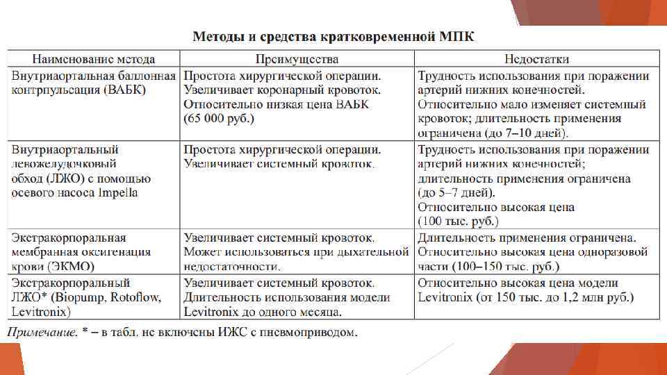 Преимущества систем ЛЖО. длительное подключение систем (от месяца до нескольких лет). возможность для пациента покинуть клинику и вести относительно активный образ жизни. При длительном ЛЖО в среднем в 5– 10% случаев наблюдается восстановление сократительной способности миокарда. Недостаток – относительно высокая стоимость аппаратов.