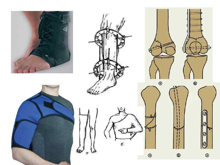 Программа реабилитации при повреждениях ОДА • • • Необходимо учитывать: Общее состояние больного, его психологический статус; Состояние костной ткани и правильность сопоставления костных отломков; Характер иммобилизации (гипсовая повязка, скелетное вытяжение, остеосинтез); Состояние кожи, сухожилий, мышечной ткани, сосудов, нервов; Локализацию травмы и ее характер; Наличие повреждений нервных стволов и сосудов.