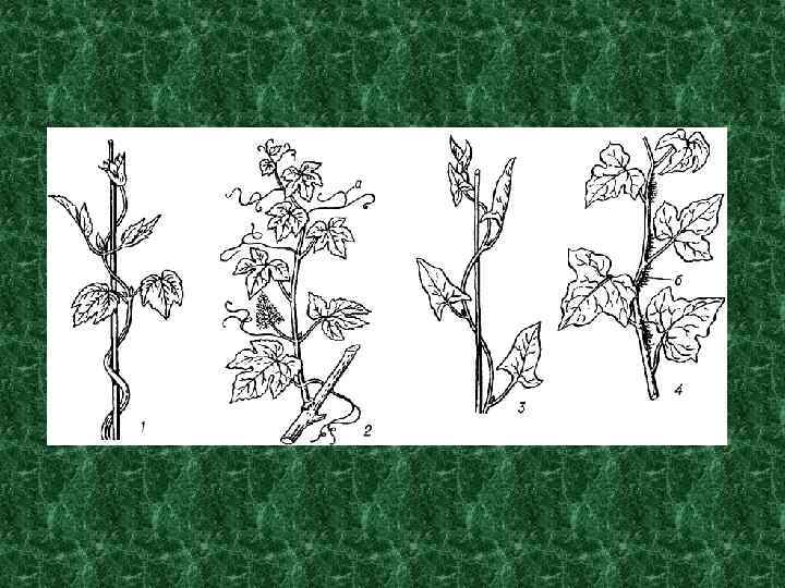 Метаморфозы вегетативных органов лиан. • • В морфологическом и анатомическом отношении лианы представляют много интерсных особенностей, находящихся в связи с их разнообразным образом жизни. Стебли их, выступая приростании из семени, часто производят сначала усы, присосала и т. п. а затем уже листья. Одни прикрепляются усиками. Усики- это нитевидные органы, чувствительные к прикосновению и приспособленные для лазания. У многих лазающих лиан часть листа или весь лист превращены в усики. Например, у винограда, бриония. Присосала. Например плющ, который присасыввается особыми короткими корнями, выходящими из нижней поверхности ветвей.