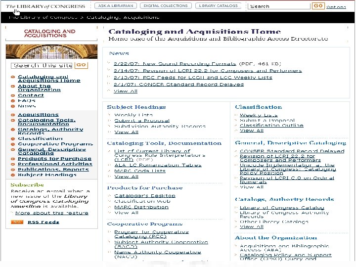 Cataloging Policy and Support Office 2006 Highlights § Newly re-designed Web site for ABA was launched on Jan. 4, 2007 (includes CPSO) : www. loc. gov/aba/
