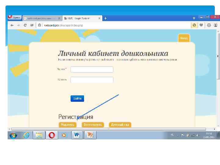 Как зарегистрироваться Родитель является авторизованным пользователем системы. Регистрация родителя в системе производится самостоятельно по адресу: webcard. pro/dou личный кабинет дошкольника Для регистрации необходимо иметь свой адрес электронной почты. На этот адрес придет логин и пароль для входа в систему РОДИТЕЛЯ, как авторизованного пользователя. Логином является адрес электронной почты, под которым зарегистрировался родитель. Паролем является высланный на электронную почту код.