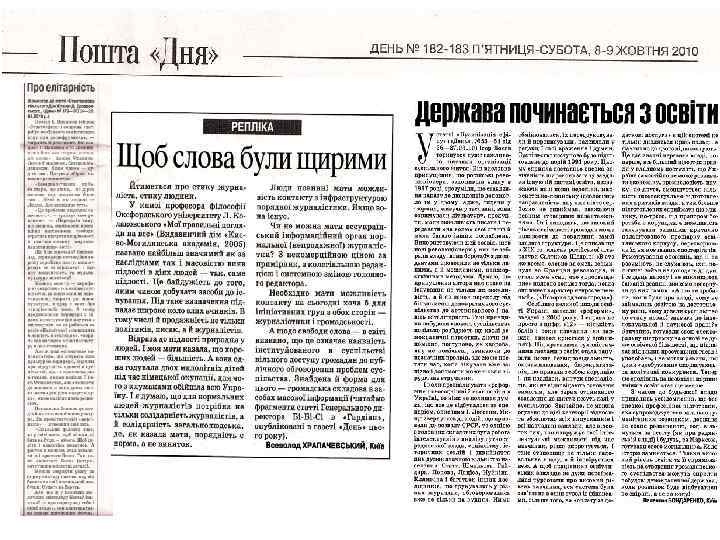 В щоденній газеті “День” кожної суботи виходить номер з рубрикою “Пошта “Дня”, де публікуються найкращі приклади цього жанру