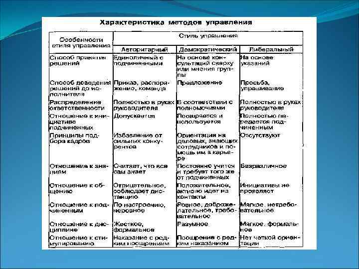 Стиль управления и его основы Стиль управления это привычная манера поведения руководителя по отношению к подчиненным, чтобы оказать на них влияние и побудить их к достижению целей организации. К «одномерным» , т. е. обусловленным одним каким то фактором, стилям управления относятся: • авторитарный; • демократический; • либеральный