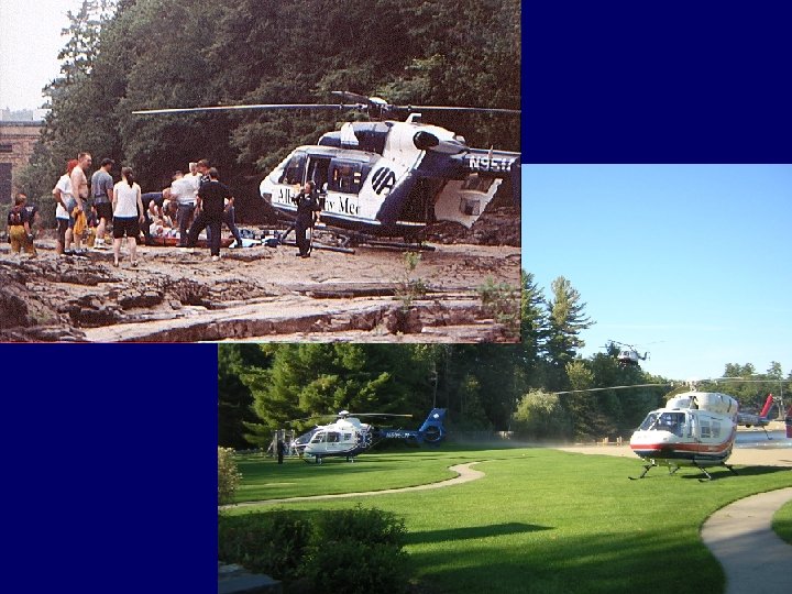 MCI Situation • Consider utilizing Life. Net of New York as part of your MCI plan • FC will be available to the transport officer • Patients are able to be dispersed with available AC not overwhelming one facility • If multiple patients are involved in a situation, multiple AC can be activated using the Life. Comm dispatch center. • Have separate LZ areas for each AC called to incident. Each LZ does not require separate FD