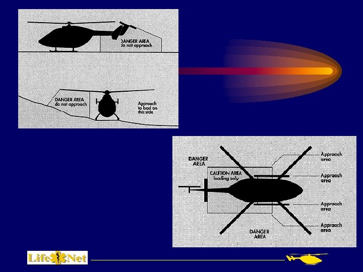 Arrival / Landing Information – Condition of the touchdown surface: be specific, ie: slope, surface (mud, packed snow, dust). – Security: assure crowd is secure and all traffic is stopped for landing and take-off. – LZ officer will be notified of “final approach”. If any unsafe or potentially unsafe situation arises, contact pilot to make aware. Use short simple commands: “STOP! WIRES!”, etc.