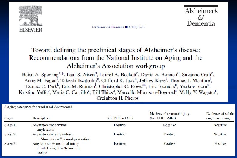Objectives Annals Neurol 2012 Operationalize the NIA-AA criteria n How do cognitively normal subjects (n=450) in MCSA distribute in the NIA-AA scheme? n