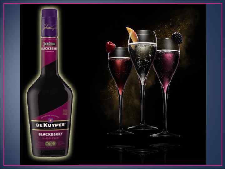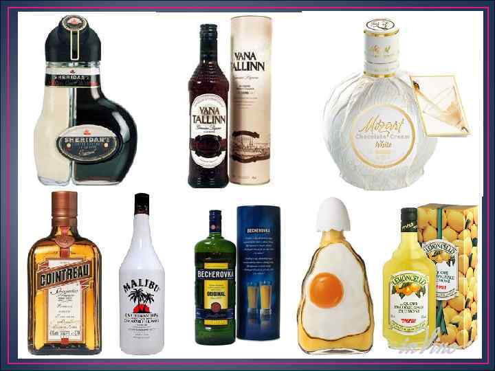 Классификация и характеристика ассортимента Ликеры и кремы Цитрусовые ликеры (крепость 20 40% об. ) — при их изготовлении используются плоды цитрусовых. Ликеры из вина — их основу составляют вина и бренди с добавле нием различных ингредиентов, предусмотренных рецептурой. Ликеры на основе сакэ изготовляют с использованием рисовой вод ки и пряновкусового сырья. Солодовый ликер получают из сброженного сусла ячменного соло да и кукурузных зерен. Пивной ликер, в его состав входят пиво, спирт, сахар, ликер ваниль и дру гие ингредиенты.