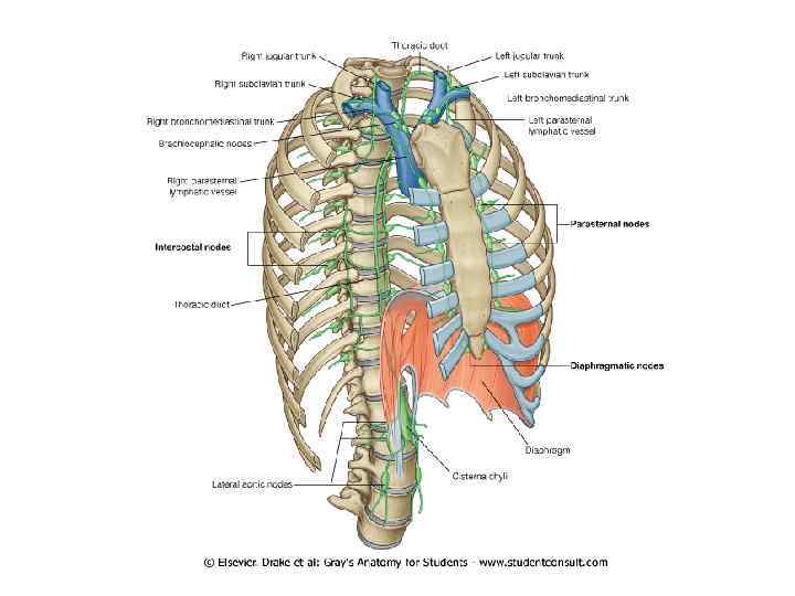 Лимфатические сосуды (внутриорганные, внеорганные) Лимфатические стволы: • поясничные (2) • • кишечные (1 -3) бронхомедиастинальные (2) • Подключичные (2) • Яремные (2) Лимфатические протоки: • грудной проток • правый лимфатический проток