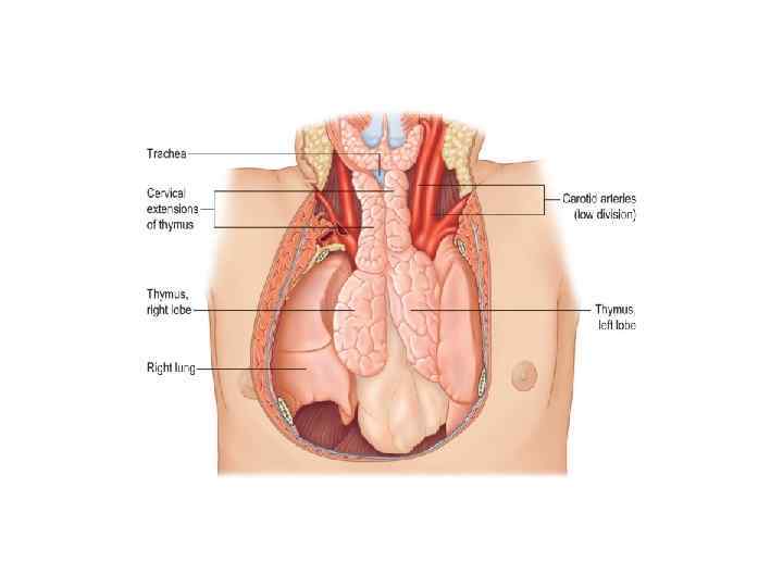 Лимфоидная (иммунная) система Первичные (центральные) лимфоидные органы Тимус Продукция Т-лимфоцитов Красный костный мозг Продукция В-лимфоцитов Вторичные (периферические) лимфоидные органы Лимфатические узлы Лимфоидная ткань, ассоциированная со слизистыми оболочками Селезенка Лимфоидная ткань, ассоциированная с кожей