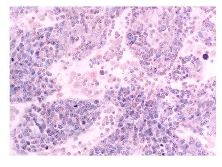 Индукция цитохрома CYP 1 A 1/1 A 2 в цитоплазме макрофагов (стрелки) и на их цитоплазматической мембране (двойные стрелки) в просвете мозгового синуса брыжеечного лимфатического узла крысы через 3 суток после введения бензпирена. Индукция цитохрома CYP 1 A 1/1 A 2 в макрофагах в просвете мозгового синуса брыжеечного лимфатического узла крысы через 3 суток после введения бензпирена (И. В. Майбородин)