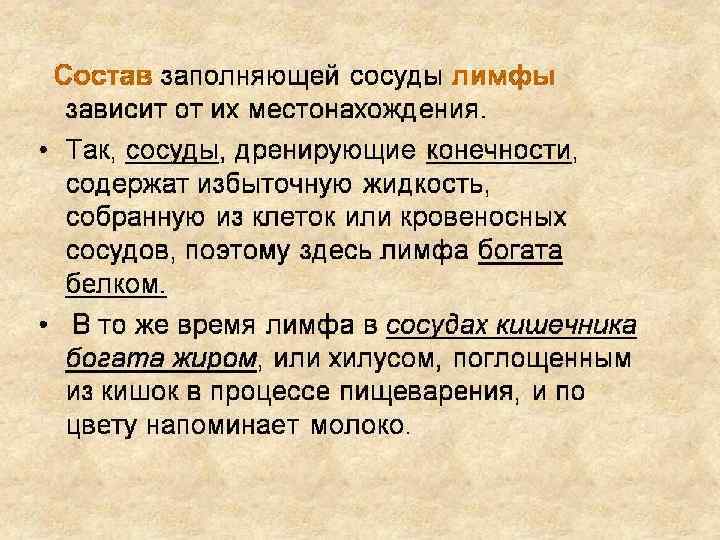 Особенности лимфатической системы • Лимфа не содержит эритроцитов, тромбоцитов, но в ней много лимфоцитов. • Свертывается медленно. • В отличие от кровеносной системы, лимфатическая система млекопитающих незамкнутая и не имеет центрального насоса. • Лимфа движется медленно (4 мм в минуту) и под небольшим давлением. • • Движению лимфы помогают 1. клапаны в лимфатических сосудах, 2. сокращение мышц, 3. присасывающее действие грудного лимфатического протока при вдохе