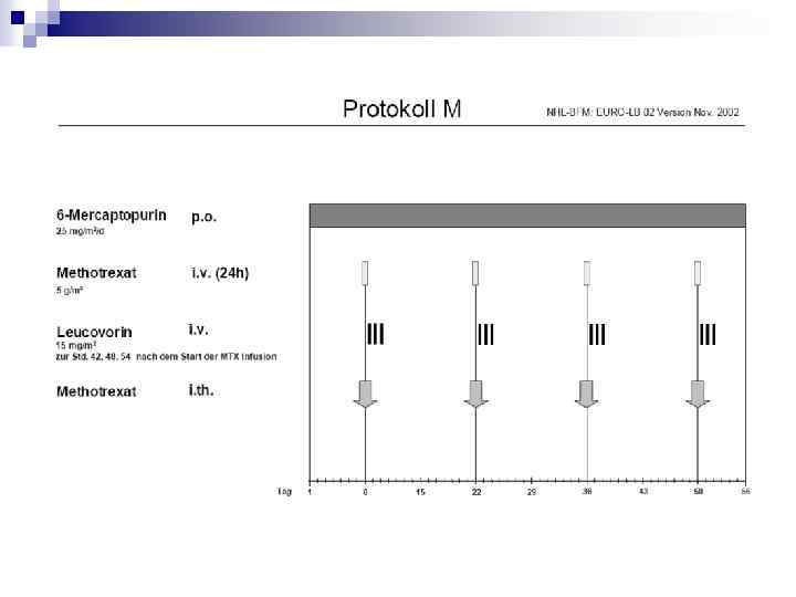 Схемы полихимиотерапии Циклофосфан Прокарбазин 100 mg/m 2, PO 1 -15 40 mg/m 2, PO 1 -15 1. 5 mg/m 2, IV (max 2 mg) 1, 8, 15 Прокарбазин 100 mg/m 2, PO 1 -15 Преднизолон 60 mg/m 2, PO 1 -15 40 mg/m 2, IV 1, 15 1. 5 mg/m 2, IV (max 2 mg) 1, 8, 15 Этопозид 125 mg/m 2, IV 3 -6 Преднизолон 60 mg/m 2, PO 1 -15 Доксорубицин 40 mg/m 2, IV 1, 15 Винбластин 6 mg/m 2, IV 1, 15 Доксорубицин 25 mg/m 2, IV 1, 15 Метотрексат 20 mg/m 2, IV 1, 15 Преднизолон 40 mg/m 2, PO 1 -14 Винбластин VBVP 1, 8 Винкристин VAMP 1. 4 mg/m 2, IV (max 2 mg) Доксорубицин OEPA Винкристин OPPA 1, 8 Преднизолон COPP 600 (500) mg/m 2, IV 6 mg/m 2, IV 1, 8 Блеомицин 10 mg/m 2, IV 1 Этопозид 100 mg/m 2, IV 1 -5 Преднизолон 40 mg/m 2, PO 1 -8
