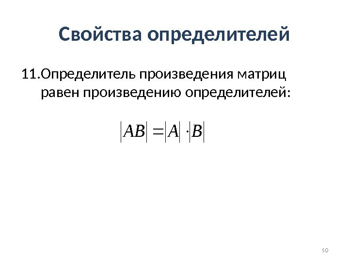 Свойства определителей 11. Определитель произведения матриц равен произведению определителей: