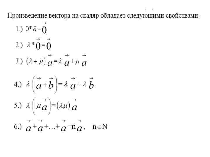 Нелинейные операции на множестве векторов 1. Скалярное произведение векторов СВОЙСТВА СКАЛЯРНОГО ПРОИЗВЕДЕНИЯ ВЕКТОРОВ 1) Скалярное произведение векторов коммутативно, т. е.