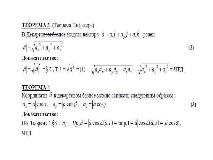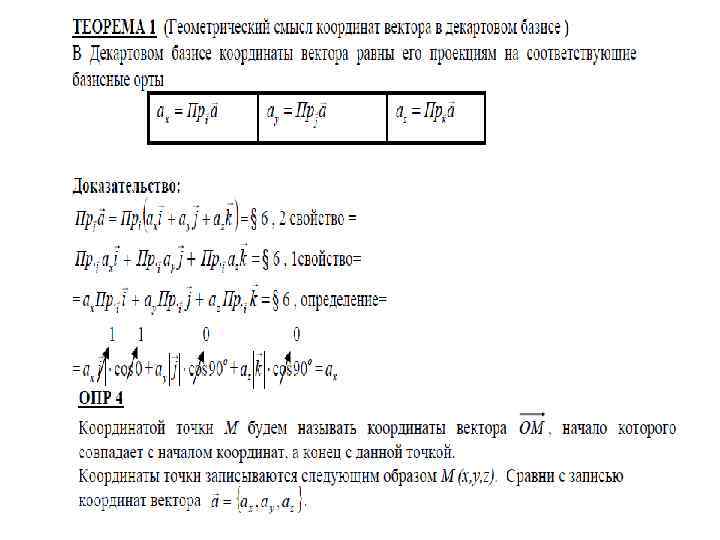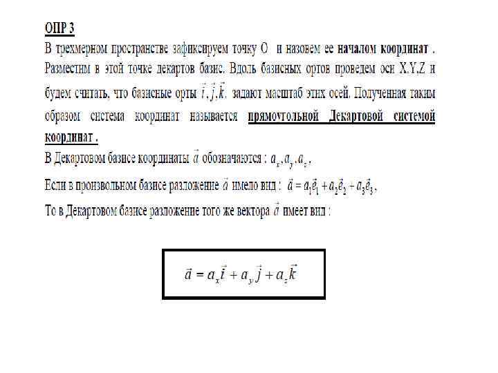 Координаты вектора ОПРЕДЕЛЕНИЕ. Коэффициенты в разложении вектора по базису называются координатами этого вектора в данном базисе. ГЕОМЕТРИЧЕСКИЙ СМЫСЛ координат свободных векторов в декартовом прямоугольном базисе: ОПРЕДЕЛЕНИЕ. Прямую, на которой выбрано направление, называют осью.