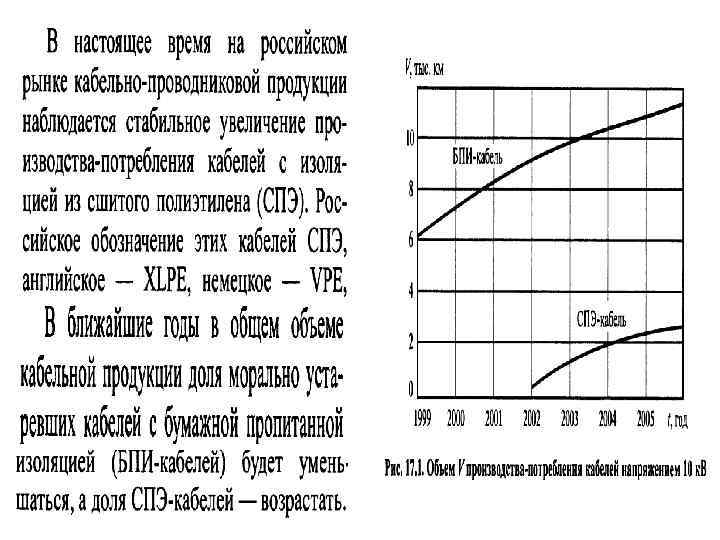 Силовые кабели с изоляцией из сшитого полиэтилена (КСПЭ) • • Достоинства: низкая повреждаемость; уменьшается износ изоляции по сравнению с кабелями с бумажной или иной изоляцией; небольшая масса, меньший диаметр и радиус изгиба, легкость прокладки; возможность прокладки на пересеченной местности, в вертикальных и наклонных коллекторах; прокладка и монтаж кабелей могут осуществляться при температуре до минус 15 … 20°С; высокоэкологичны; большая строительная длина (2… 4 км) при использовании однофазного кабеля. • • Недостатки КСПЭ : невысокая термическая стойкость экранов кабелей при междуфазных КЗ, необходимость фиксации кабелей по всей трассе; повреждения оболочки кабелей при прокладке и монтаже способствуют развитию в изоляции водных триингов (древовидных полостей, заполняющихся водой), трудно обнаруживаемых при диагностировании.