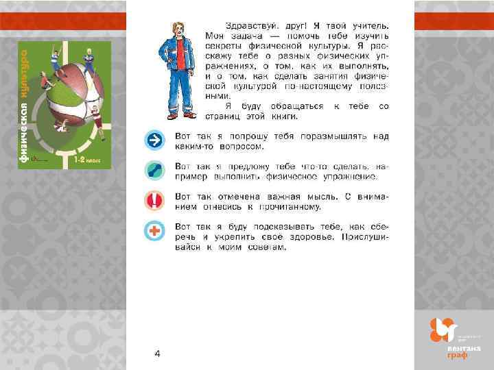 Особенности содержания учебника по физической культуре для начальной школы доступность изложения наглядно-образный характер предлагаемых физических упражнений воспитательный потенциал различной направленности материала для формирования социально-значимых качеств личности упражнения для развития основных двигательных качеств комплексы для коррекции различных систем организма советы, когда и по каким вопросам следует обращаться к врачу