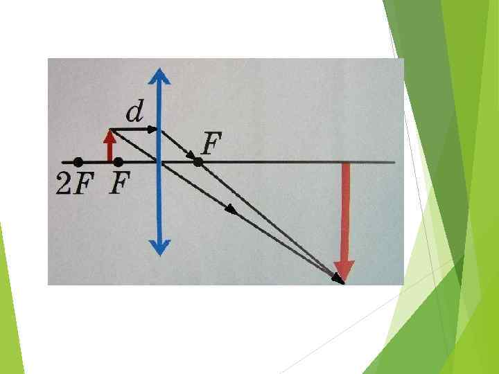 Изображение действительное, перевернутое, уменьшенное, между F и 2 F Применение: фотоаппарат