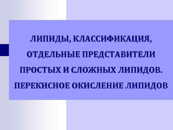ЛИПИДЫ, КЛАССИФИКАЦИЯ, ОТДЕЛЬНЫЕ ПРЕДСТАВИТЕЛИ ПРОСТЫХ И СЛОЖНЫХ ЛИПИДОВ. ПЕРЕКИСНОЕ ОКИСЛЕНИЕ ЛИПИДОВ
