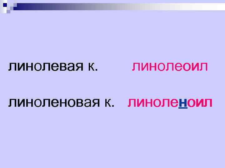 линолевая к. линолеоил линоленовая к. линоленоил