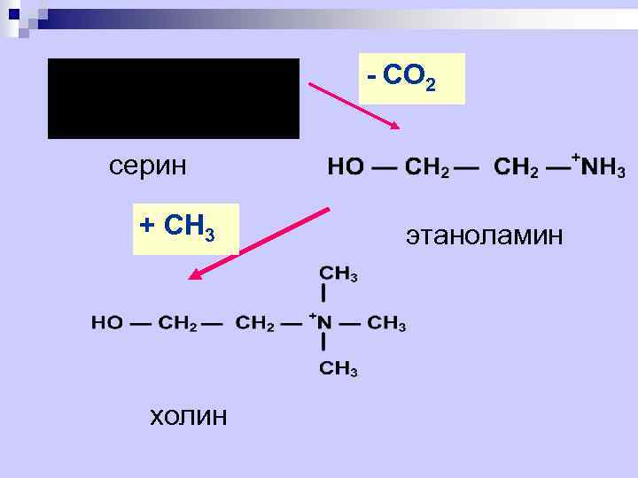 - СО 2 серин + СН 3 холин этаноламин