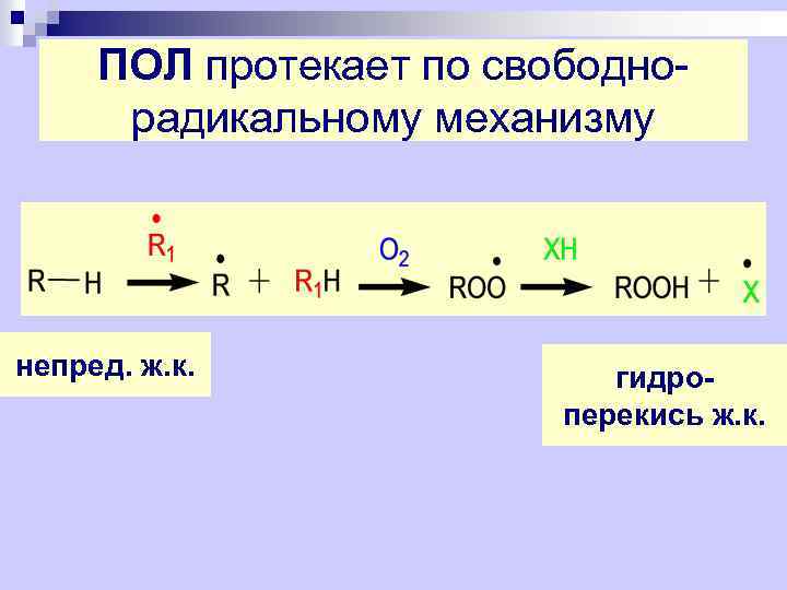 ПОЛ протекает по свободнорадикальному механизму непред. ж. к. гидроперекись ж. к.