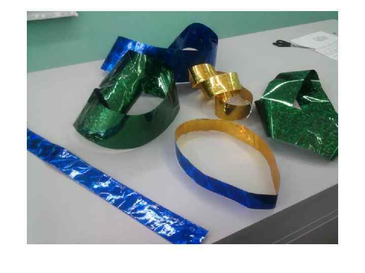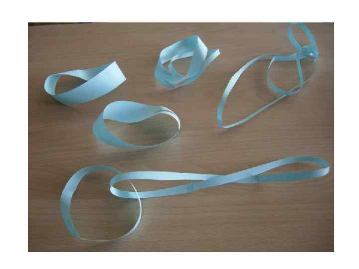 Фокус № 4 Вот что будет, если разрезать закрученную на 360 градусов ленту Мёбиуса на 3 и 4 части. Фокус № 5: Если разрезать пополам ленту Мебиуса, которая закручена на 3 полуоборота (540 градусов), то получится лента, завитая в узел трилистника, избавиться от которого можно, лишь разрезав кольцо.