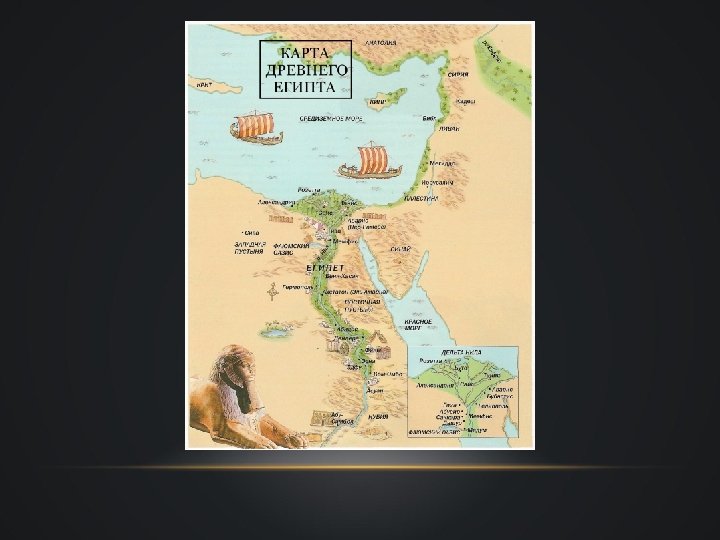 ОСОБЕННОСТИ ПОЛИТИЧЕСКОГО УСТРОЙСТВА ДРЕВНЕГО ЕГИПТА • Создание единой системы ирригационного земледелия стало предпосылкой для возникновения в Египте централизованного государства. В конце 4 — начале 3 тыс. до н. э. начался процесс объединения отдельных номов. • Узкая долина реки — от первых нильских порогов до дельты — и область самой дельты были освоены неодинаково. Это различие на протяжении всей египетской истории сохранялось в делении страны на Верхний и Нижний Египет. • Это деление сохранялось в делении страны на Верхний и Нижний Египет и отражалось даже в титулатуре фараонов, которые именовались «царями Верхнего и Нижнего Египта» . . • Объединение Верхнего и Нижнего Египта приписывается первому фараону I-й династии Мине, который, основал на границе Верхнего и нижнего Египта новую столицу, Мемфис и был его первым правителем. • В результате ранней централизации власти в Египте не формируются демократические механизмы управления, в руках фараона сосредотачивается неограниченная власть • Развивается массивный многоступенчатый чиновничий аппарат
