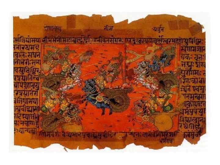 «Бхагавад-гита» Индуисты считают, что основная суть всей разнообразной философии индуизма заключена в «Бхагавад-гите» . Она представляет собой микрокосм ведической, йогической, ведантической и даже тантрической мысли в индуизме. «Бхагавад-гита» (в буквальном переводе: «Песнь Бога» ) является частью эпической поэмы «Махабхараты» . Хотя особое значение «Бхагавадгита» имеет для последователей вайшнавизма, она изучается и почитается последователями всех течений в индуизме. «Бхагавад-гиту» принято называть «Гита-упанишадой» или «Йога-упанишадой» — это указывает на то, что Кришна в «Бхагавад-гите» излагает истины йоги и Упанишад. В «Бхагавад-гите» Кришна провозглашает бхакти, любовь и преданность Богу, наивысшей формой религиозного выражения. Кришна говорит, что ради бхакти стоит отвергнуть все другие виды дхармы и провозглашает чистую и бескорыстную любовь к Богу высшим совершенством жизни. Возлюбя Бога, индивид непременно находит духовную гармонию и умиротворение как внутри себя, так и вовне. «Бхагавад-гита» представляет себя как «писание освобождения» , универсальное в своём послании.