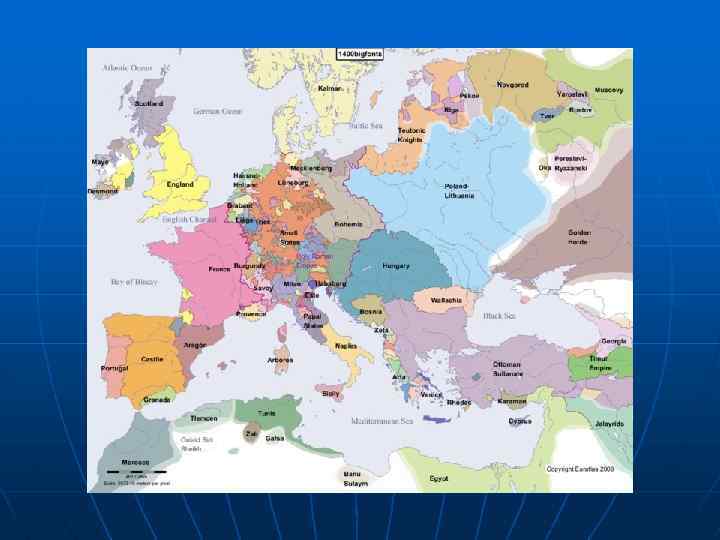 Основные этапы геополитической истории Европы в Средние века n n n Основание новой столицы (Константинополя или Нового Рима) в Малой Азии и раздел Римской Империи на Западную и Восточную – IV в. по Р. Х. Падение Западной Римской империи и образование на ее территории «варварских королевств» (V – VIII вв. по Р. Х. ), а затем национальных монархий (этот процесс завершается только в XIX в. ) Обособленное существование Византийской империи с V в. до ее уничтожения в XV в. турками-сельджуками, основавшими Османскую империю (Великую Порту). После гибели Византии на роль политического центра Восточной Европы начинает претендовать Московская Русь (идея «Третьего Рима» ).