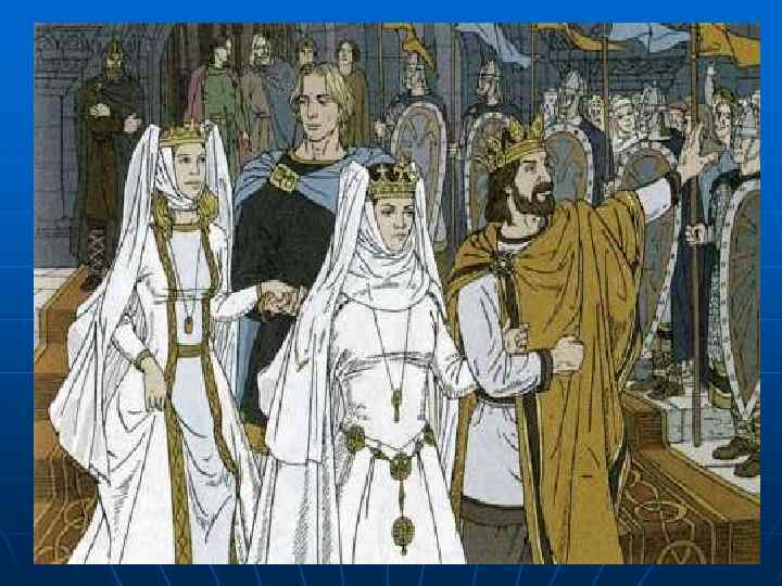 Героический эпос n n n «Песнь о Нибелунгах» - полнее всего разработан сюжет, присутствующий в «Старшей Эдде» и «Беовульфе» . Зигфрид (Сигурд) – богатырь, владелец клада Нибелунгов, победивший охранявшего дракона Гюнтер – король бургундов, названый брат Зигфрида Хаген – придворный Гюнтера, по его приказу предательски убивший Зигфрида. Брунгильда – ирландская богатырша, ставшая женой Гюнтера при помощи Зигфрида Кримхильда – сестра Гюнтера и жена Зигфрида, отомстившая бургундам за смерть мужа