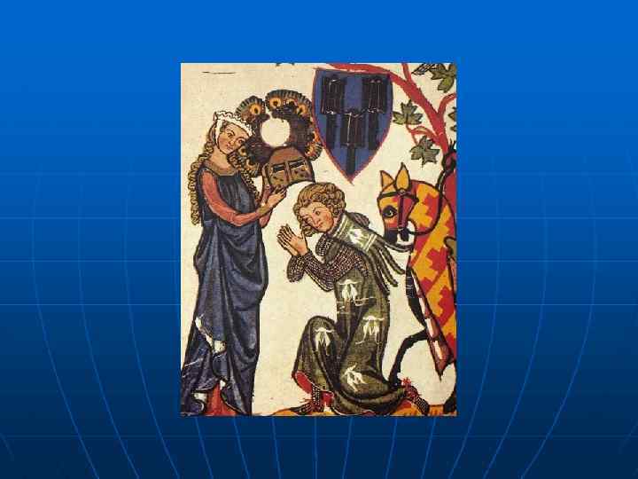 Куртуазная литература n n n В основе куртуазности лежит принцип оммажа (присяга на верность в обмен на покровительство) Возникнув в сфере социальной жизни (отношения сюзерена и вассала), распространяется и на другие сферы: частной (отношение к женщине. Прекрасной Даме как к сюзерену) и религиозной (отношение к Богу как сюзерену) Призвание куртуазной литературы – эстетизация отношений оммажа