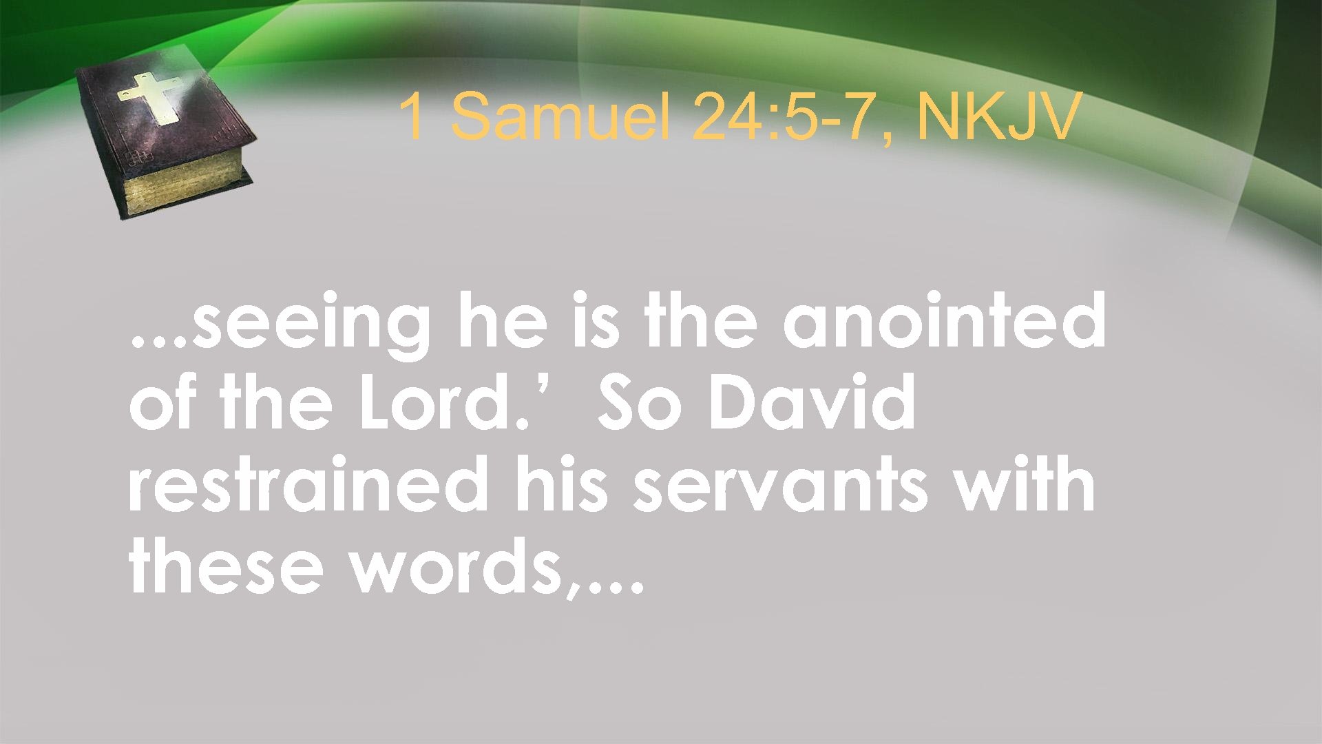 1 Samuel 24: 5 -7, NKJV . . . seeing he is the anointed of the Lord. ’ So David restrained his servants with these words, . . .
