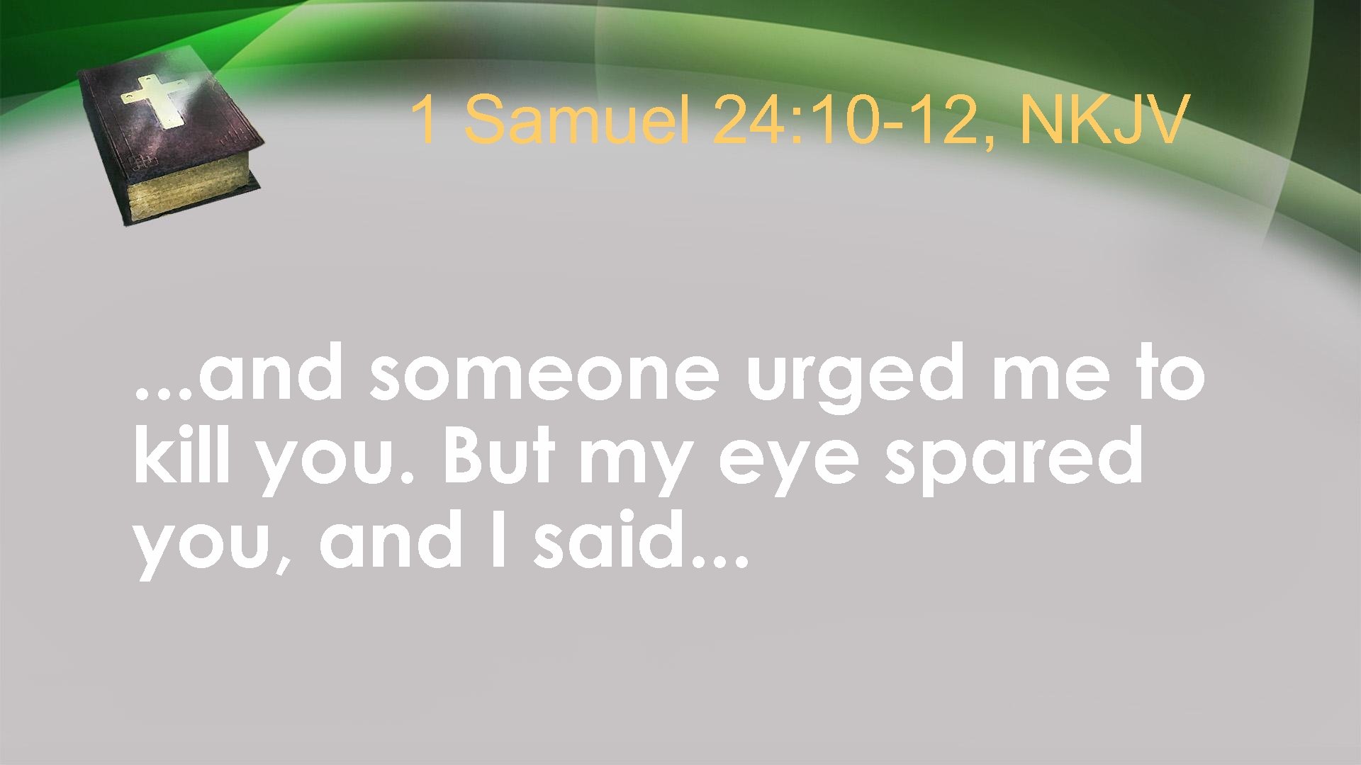 1 Samuel 24: 10 -12, NKJV . . . and someone urged me to kill you. But my eye spared you, and I said. . .